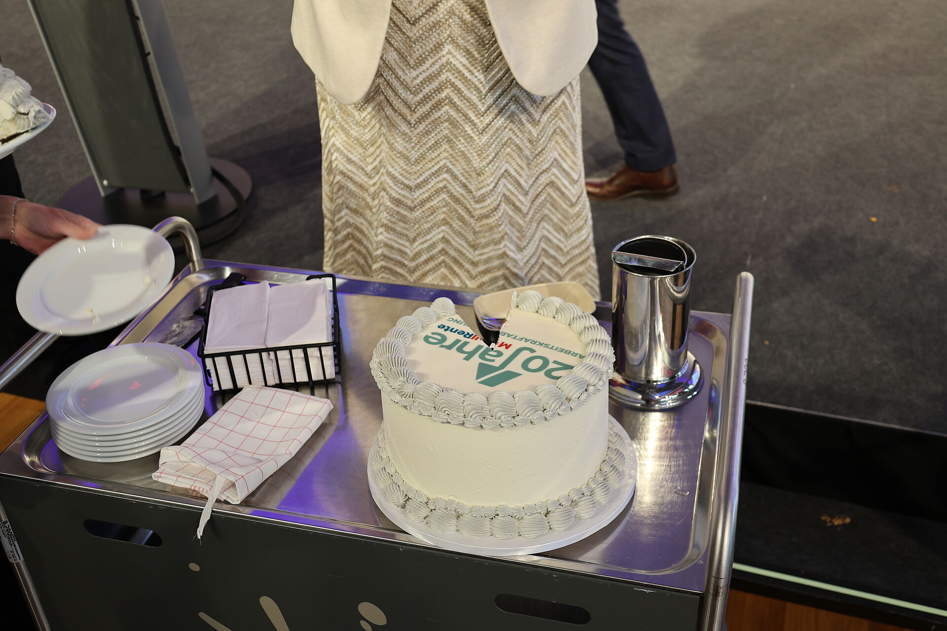 Ein symbolischer Höhepunkt war der gemeinsame Anschnitt der Jubiläumstorte durch MetallRente Geschäftsführer Hansjörg Müllerleile und Stefan Holzer, Geschäftsführungsmitglied der Swiss Life. Der Moment unterstrich die erfolgreiche Partnerschaft und den gemeinsamen Anspruch, Arbeitskraftabsicherung nachhaltig und zielgruppengerecht weiterzuentwickeln.