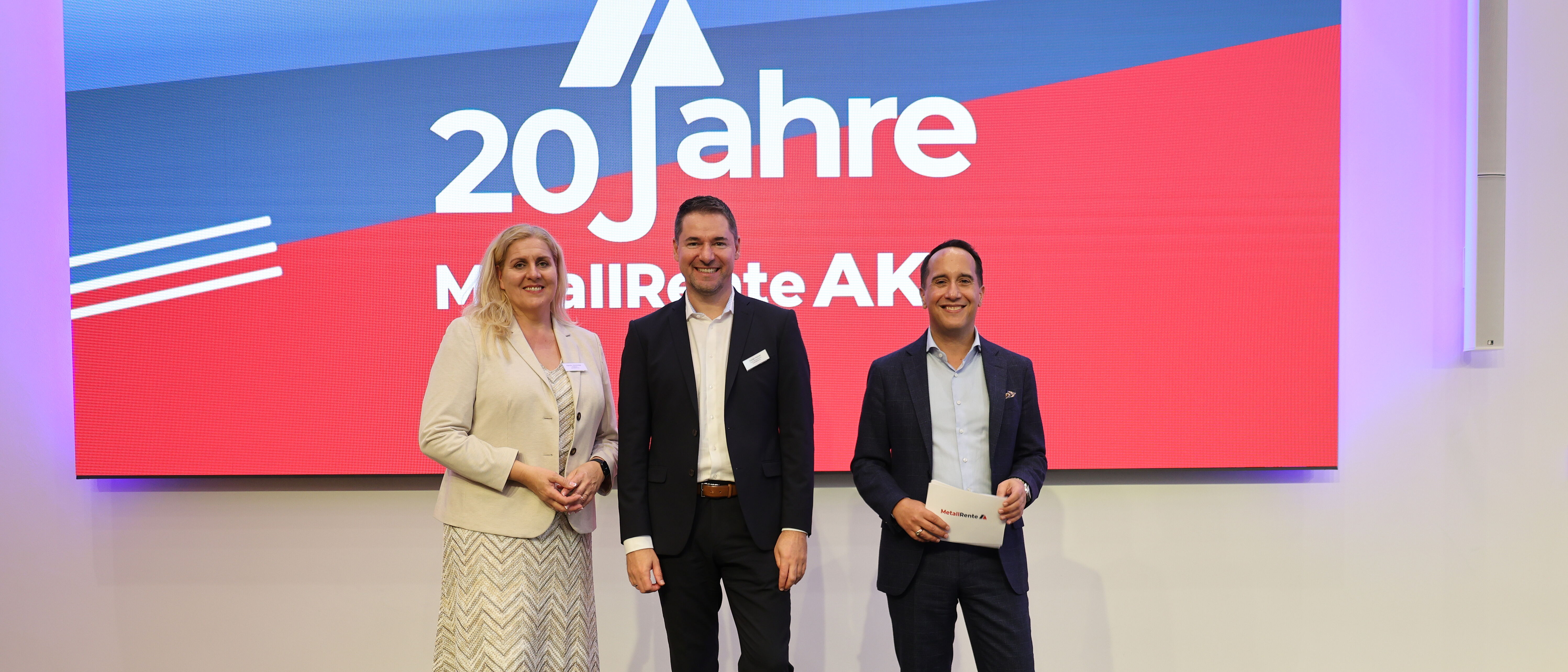 Die MetallRente AKS verbindet kontinuierliche Weiterentwicklung mit 20 Jahren Erfahrung in der privaten Arbeitskraftabsicherung. Dieses Jubiläum wurde am 14. Oktober 2025 gemeinsam mit den Konsortialpartnern Swiss Life, Allianz, R+V und ERGO sowie Branchenexpertinnen und -experten im Rahmen der Konferenz „20 Jahre Arbeitskraftabsicherung – gemeinsam stark“ in Hannover gefeiert.
